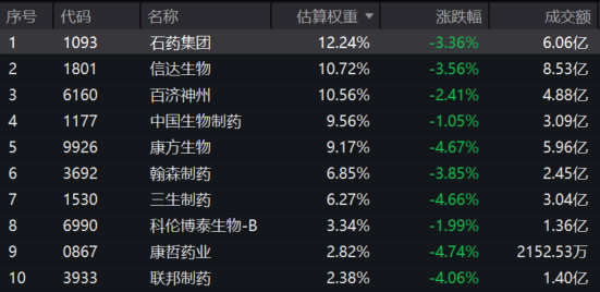 截至13:40,港股通创新药ETF(159570)标的指数权重股多数飘绿:康方生物、三生制药跌超4%,石药集团、信达生物跌超3%,百济神州、翰森制药跌超2%,中国生物制药跌超1%。