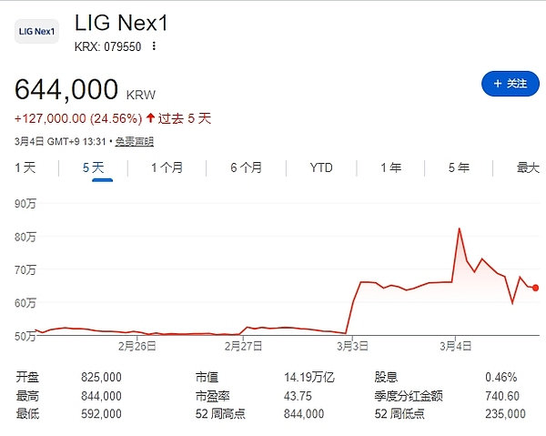 LIG Nex1股价走势
