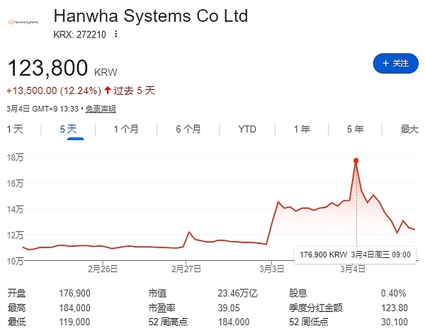 韩华系统 (Hanwha Systems) 股价走势