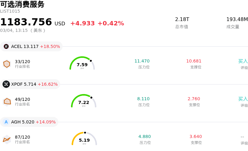 缤客 (BKNG) 盘中上涨3.42%, 所属行业可选消费服务上涨0.42% ,公司涨幅跑赢行业涨幅,行业涨幅前三股票 Accel Entertainment Inc (ACEL) 上涨 18.50%;Xponential Fitness Inc (XPOF) 上涨 16.62%;Aureus Greenway Holdings Inc (AGH) 上涨 14.09%。