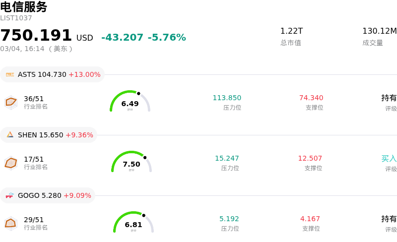 Comcast Corp (CMCSA) 收盘上涨3.52%, 所属行业电信服务下跌5.76% ,公司涨幅跑赢行业涨幅,行业涨幅前三股票 AST SpaceMobile Inc (ASTS) 上涨 13.00%;Shenandoah Telecommunications Co (SHEN) 上涨 9.36%;Gogo Inc (GOGO) 上涨 9.09%。