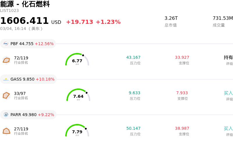 菲利普66公司 (PSX) 收盘上涨3.10%, 所属行业能源 - 化石燃料上涨1.23% ,公司涨幅跑赢行业涨幅,行业涨幅前三股票 PBF Energy Inc (PBF) 上涨 12.56%;StealthGas Inc (GASS) 上涨 10.18%;Par Pacific Holdings Inc (PARR) 上涨 9.22%。