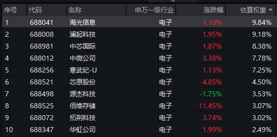 【科创芯片ETF汇添富(588750)标的指数前十大成分股】