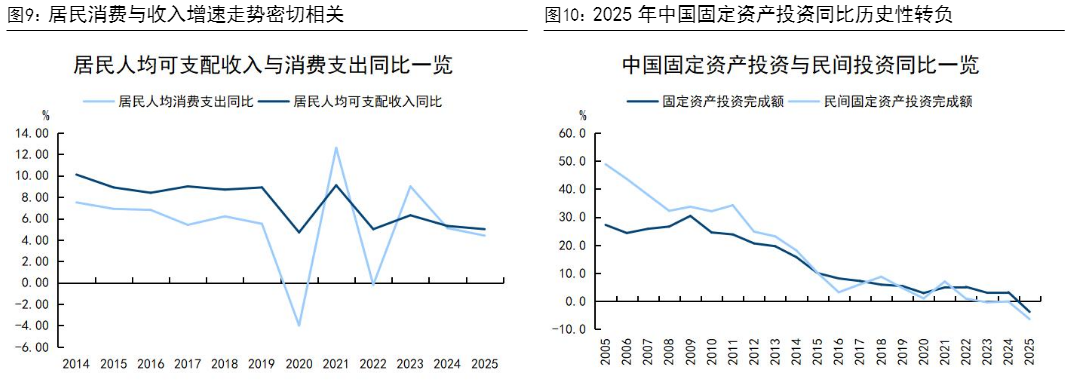 在扩大消费方面,(1)延续了消费品以旧换新政策,安排超长期特别国债2500亿元,规模略有下调但更强调“优化政策实施机制”;此外,新设1000亿元财政金融协同促内需专项资金,并扩大贴息政策支持领域,通过市场化手段撬动消费信贷,表明政策工具从单一财政补贴向“财政 金融”协同发力转变;(2)深化了居民增收举措,首次提出“城乡居民增收计划”,在低收入群体增收、财产性收入增加等长效机制上寻求突破,直指消费能力这一根本制约。
