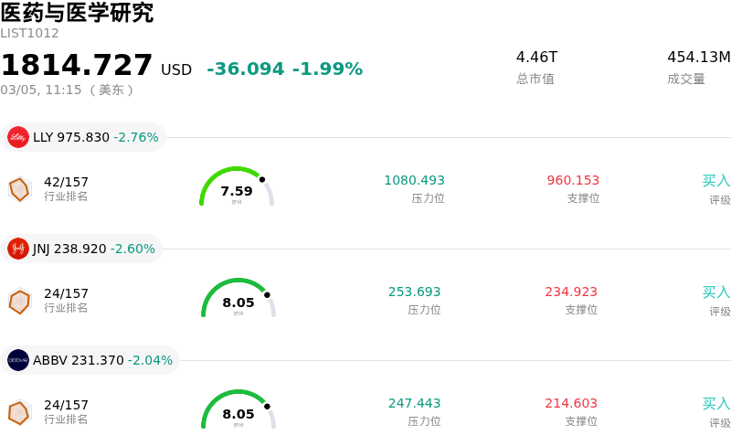 麦克森 (MCK) 盘中下跌4.47%, 所属行业医药与医学研究下跌1.99% ,公司涨幅跑输行业涨幅,行业成交额前三股票 礼来 (LLY) 下跌 2.76%;强生 (JNJ) 下跌 2.60%;艾伯维 (ABBV) 下跌 2.04%。