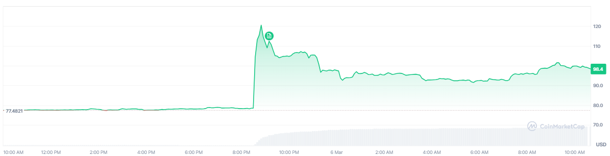 周五(3月6日),平台币OKB价格跌破100美元关口,暂报98.4美元。相比前一天的高点,OKB价格已经回撤18%,正在重复Uniswap的模式,进一步反映出整个加密市场仍然疲软。