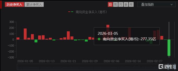 尽管昨天南下资金单日狂卖277亿创历史纪录,今天净卖出21.88亿,但年内累计净买入仍超1500亿港元。