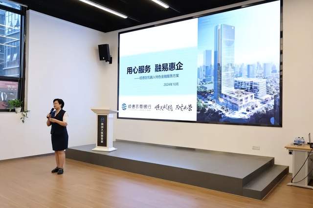 金融先锋队队员宇晖在2025年“深顺智链·共创未来”大湾区机器人产业协同发展大会上宣讲最新金融方案,为企业提供专业金融指导。