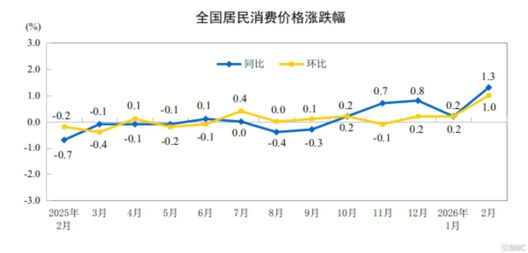 3月9日,国家统计局公布2026年2月CPI和PPI数据。