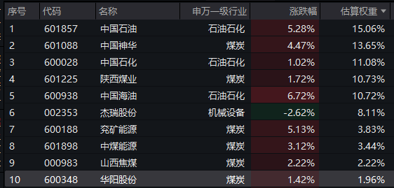 【能源ETF(159930)标的指数前十大成分股】