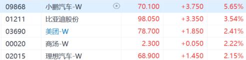 大型科技股涨跌不一,地平线机器人跌超4%,联想集团跌超3%,小鹏汽车涨超5%,比亚迪股份涨超3%。