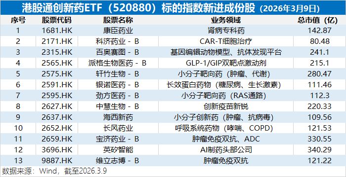 3月9日(周一),华宝基金港股通创新药ETF(520880)标的指数(恒生港股通创新药精选指数)重磅调仓正式生效!