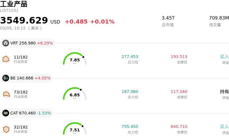 通用电气 (GE) 盘中下跌3.02%, 所属行业工业产品上涨0.01% ,公司涨幅跑输行业涨幅,行业成交额前三股票 Vertiv Holdings Co (VRT) 上涨 6.29%;Bloom Energy Corp (BE) 上涨 4.05%;Caterpillar Inc (CAT) 下跌 1.53%。