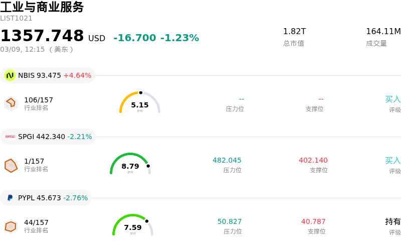 穆迪 (MCO) 盘中下跌3.52%, 所属行业工业与商业服务下跌1.23% ,公司涨幅跑输行业涨幅,行业成交额前三股票 Nebius Group NV (NBIS) 上涨 4.64%;标普全球 (SPGI) 下跌 2.21%;PayPal Holdings Inc (PYPL) 下跌 2.76%。