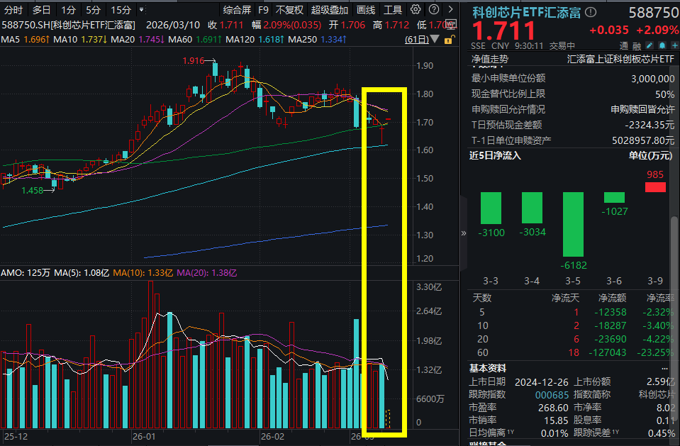 3月10日,AI主线开盘暴走,截至9:32,科创人工智能ETF汇添富(589560)开盘涨超3%,此前5日有4日吸金超2100万元!科创芯片ETF汇添富(588750)涨超2%!