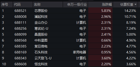 【科创人工智能ETF汇添富(589560)标的指数前十大成分股】