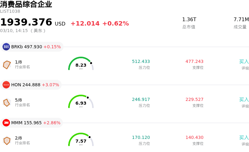 霍尼韦尔 (HON) 处于消费品综合企业行业,最新年度营业收入$37.44B,处于行业3,净利润$5.14B,处于行业3。「公司简介」