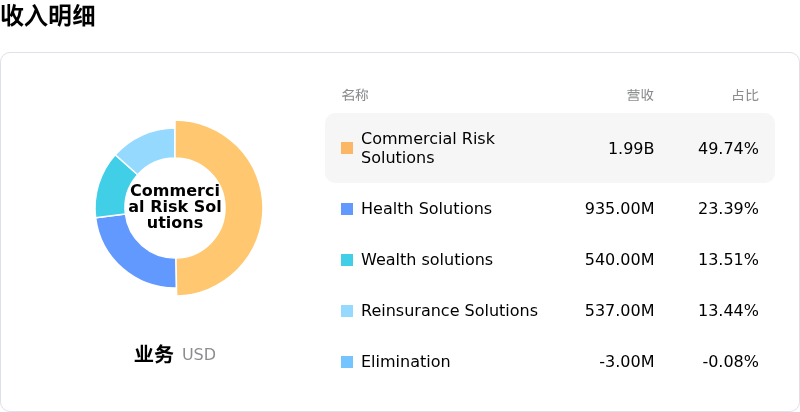 - 怡安(Aon)2025年第四季度营收录得43.0亿美元,低于预期的43.8亿美元,未达市场预期,尽管其每股收益超出了预估。