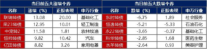 【转债市场主要指数集体跟涨】 3月10日,转债市场跟随权益市场开启反弹,中证转债、上证转债、深证转债分别收涨0.96%、0.89%、1.02%。转债市场成交额657.38亿元,较前一交易日缩量114.08亿元。转债市场个券多数上涨,374支转债中,300支收涨,54支下跌,20支持平。当日上涨个券中,联瑞转债涨超13%,荣23转债涨超12%;下跌个券中,东时转债跌逾6%,恒逸转债跌逾5%。