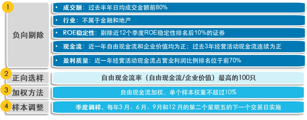 国证自由现金流指数正是以自由现金流率为核心的选股逻辑的代表策略之一,它以自由现金流率为核心筛选标准,设置ROE稳定、近三年经营现金流为正、企业价值为正等多重门槛,层层过滤掉那些“纸面繁荣”的企业,只保留真正“能赚钱、会留钱”的高质量企业。
