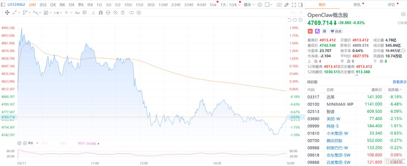 周三,港股OpenClaw概念股午后大跳水。