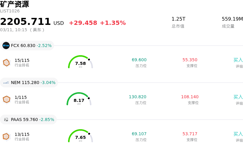 纽蒙特 (NEM) 处于矿产资源行业,最新年度营业收入$22.67B,处于行业8,净利润$7.08B,处于行业3。「公司简介」