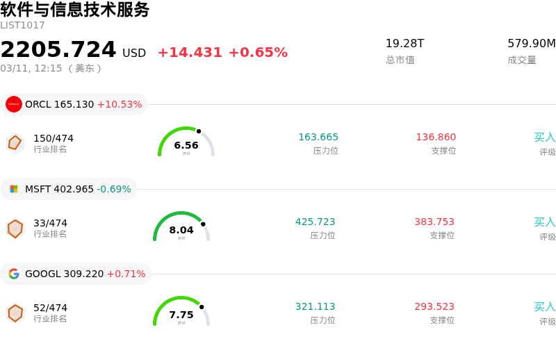 Applovin Corp (APP) 盘中下跌3.42%, 所属行业软件与信息技术服务上涨0.65% ,公司涨幅跑输行业涨幅,行业成交额前三股票 甲骨文 (ORCL) 上涨 10.53%;微软 (MSFT) 下跌 0.69%;谷歌-A (GOOGL) 上涨 0.71%。