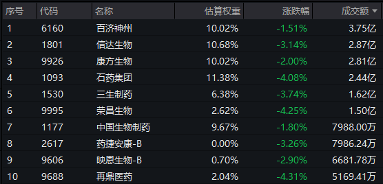 港股通创新药ETF(159570)标的指数热门股多数飘绿:石药集团、荣昌生物、再鼎医药跌超4%,信达生物、三生制药跌超3%,康方生物跌2%,百济神州跌1.5%。