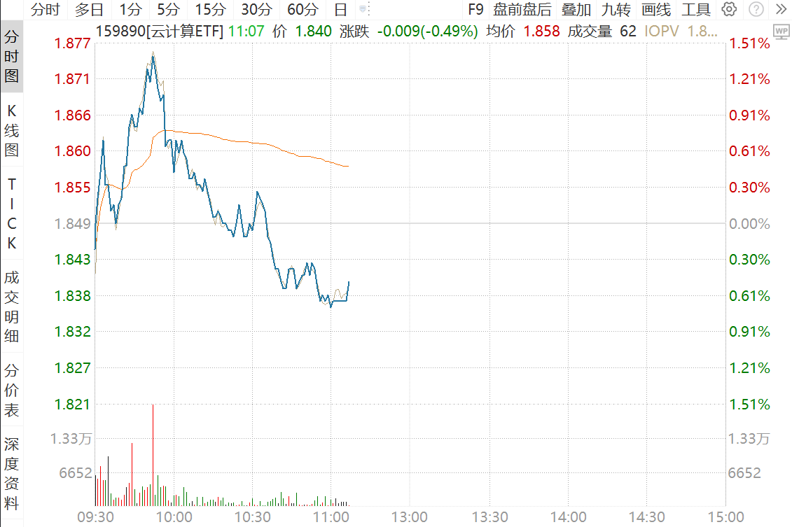 不过,热闹归热闹,真正懂行的人看到的不是代码,而是投资机会。市场上能被称为“小龙虾ETF”的,莫过于聚焦算力基建的云计算ETF(159890),今日早盘,ETF快速拉升涨近1.5%,成份股中紫光股份涨超6%,汉得信息、中科曙光涨超3%,云天励飞、浪潮信息涨超2%,网宿科技、东方国信等纷纷跟涨。