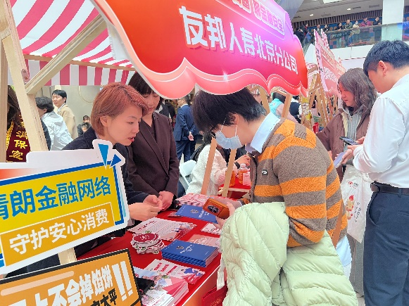 消保工作的生命力在于深入群众。3月10日,友邦北京在北京市国瑞城购物中心设立“金融科普驿站”,积极参与2026年3·15金融消保市集活动。志愿者们通过知识问答、互动游戏与案例讲解,向社区居民、职场青年、“一老一小”及新市民普及防范非法集资、识别电信诈骗、理性投资理财等实用知识,将专业术语转化为通俗语言,吸引众多市民驻足参与。