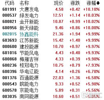 电力股强势,大唐发电、绿发电力、金开新能、新天绿能、协鑫能科、江苏新能、建投能源等多股涨停。