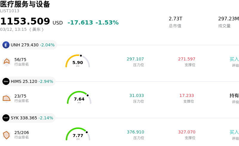赛默飞世尔科技 (TMO) 盘中下跌3.53%, 所属行业医疗服务与设备下跌1.53% ,公司涨幅跑输行业涨幅,行业成交额前三股票 联合健康 (UNH) 下跌 2.04%;Hims & Hers Health Inc (HIMS) 下跌 2.94%;史赛克 (SYK) 下跌 2.14%。