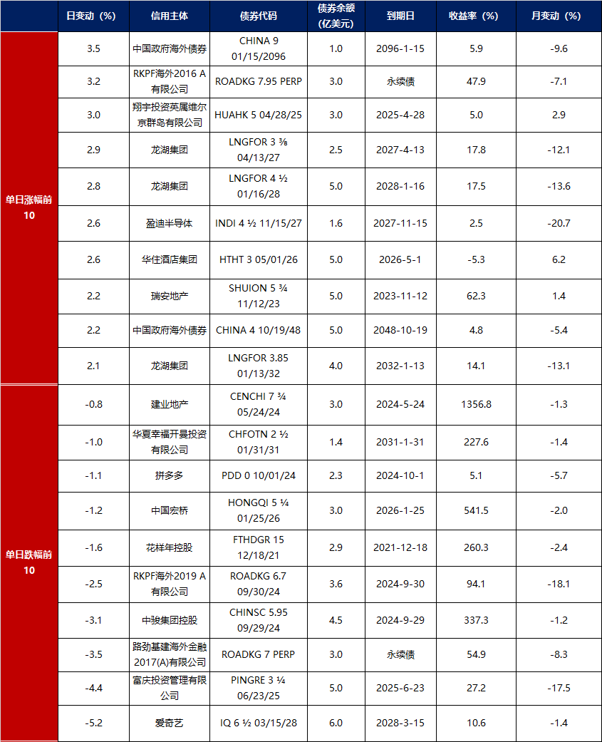 3. 中资美元债每日价格变动(截至3月12日收盘)