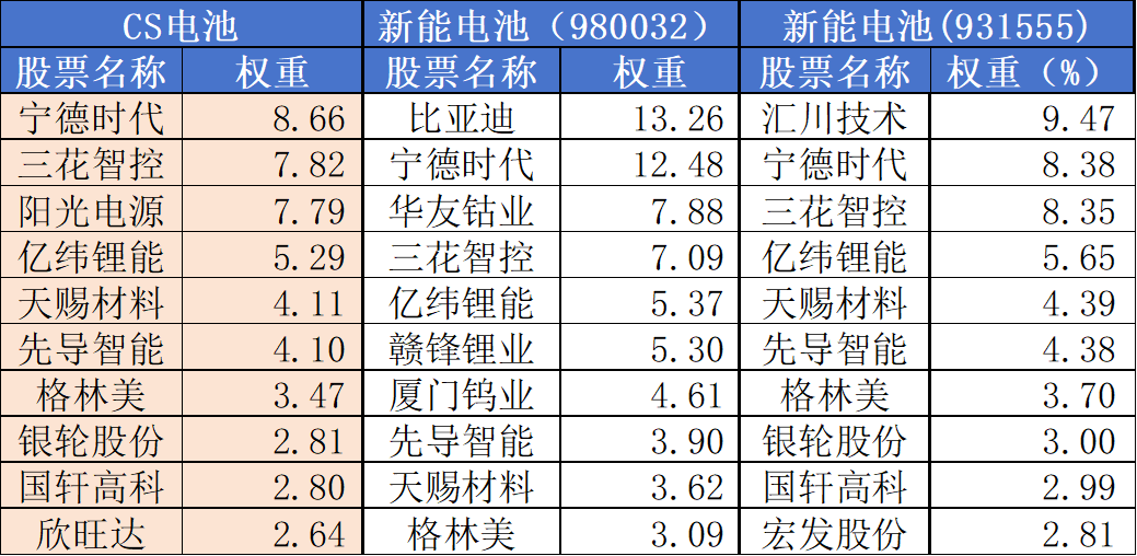 【电池ETF汇添富(159796)标的指数前十大成分股】