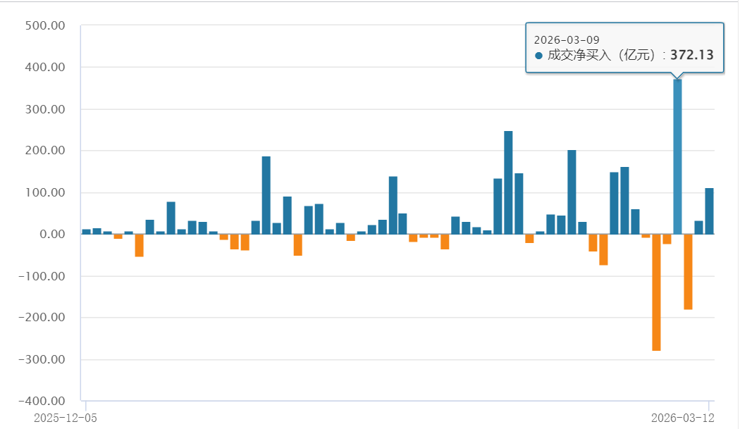近期港股市场涌现出一个极为醒目的资金信号:南向资金正开启新一轮大规模"扫货"模式。3月9日,内地资金通过港股通渠道单日净买入金额高达372.13亿港元,一举刷新历史最高纪录,较此前2025年8月15日创下的358.76亿港元峰值进一步跃升,增幅超过3.7%。
