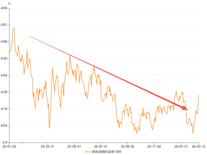 图:10年期美债收益率从2025年开始呈现下降趋势