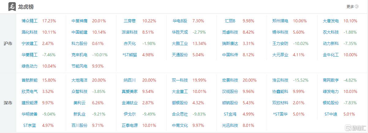 高位股方面,化工股金牛化工10天6板,电力板块中南文化5连板、华电能源4连板,宇环数控5天3板,瑞斯康达4天3板,嘉美包装4天2板,大金重工、潞化科技等2连板。