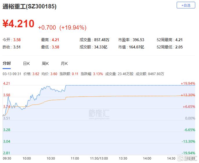 通裕重工:今日涨停,全天换手率23.13%,成交额34.33亿元,振幅17.60%。龙虎榜数据显示,机构净卖出631.04万元,深股通净买入220.72万元,营业部席位合计净买入2.74亿元。