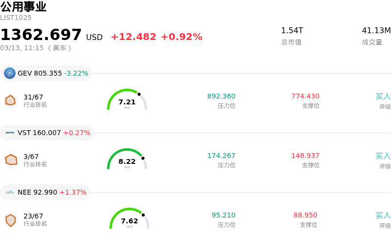 Ge Vernova Inc (GEV) 盘中下跌3.22%, 所属行业公用事业上涨0.92% ,公司涨幅跑输行业涨幅,行业成交额前三股票 Ge Vernova Inc (GEV) 下跌 3.22%;Vistra Corp (VST) 上涨 0.27%;新纪元能源 (NEE) 上涨 1.37%。