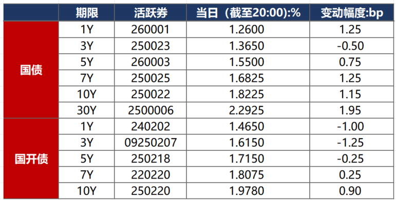 3月13日,主要利率债走势分化,中长债较为疲软,而短债受同业存款利率将下调提振而表现偏好。截至北京时间20:00,10年期国债活跃券250022收益率上行1.15bp至1.8225%,10年期国开债活跃券250220收益率上行0.90bp至1.9780%。