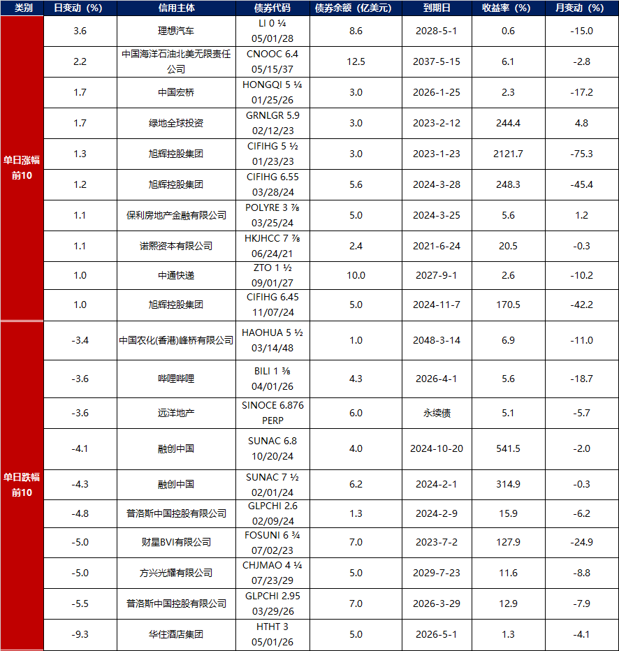 3. 中资美元债每日价格变动(截至3月13日收盘)