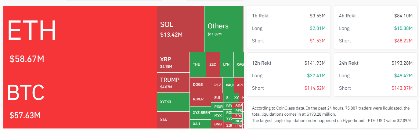 加密市场清算数据,来源:Coinglass
