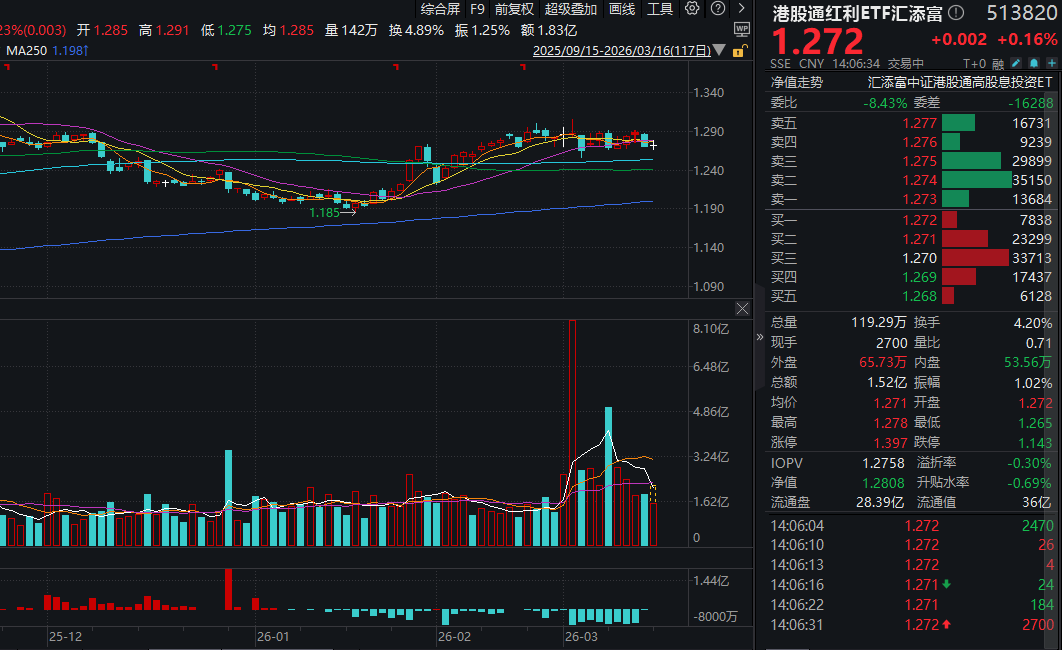 港股通红利ETF汇添富(513820)还支持T 0日内回转交易,基金通过港股通渠道投资,投资者无需担心QDII限额问题。