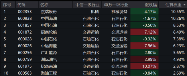 【油气ETF汇添富(159309)标的指数前十大成分股】