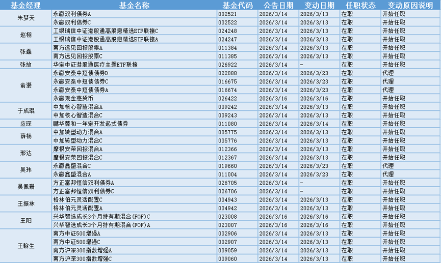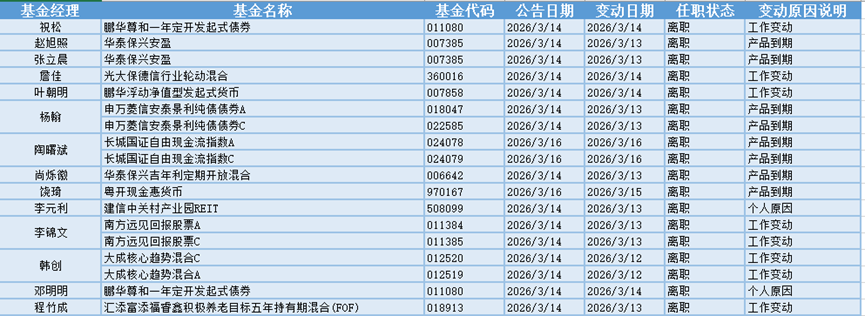 存储芯片板块强势走高,3月14日-3月16日共有44位基金经理发生任职变动