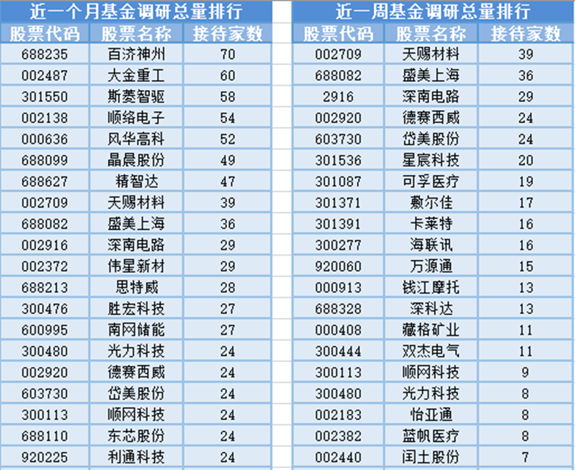 从个股调研情况上来看,最近1个月(2月14日-3月16日)最受公募基金关注的是百济神州,百济神州属于化学制药行业,主营业务为研究、开发、生产以及商业化创新型药物。共有70家基金管理公司参与调研,其次是大金重工和斯菱智驱,分别接受60家、58家基金管理公司的调研。