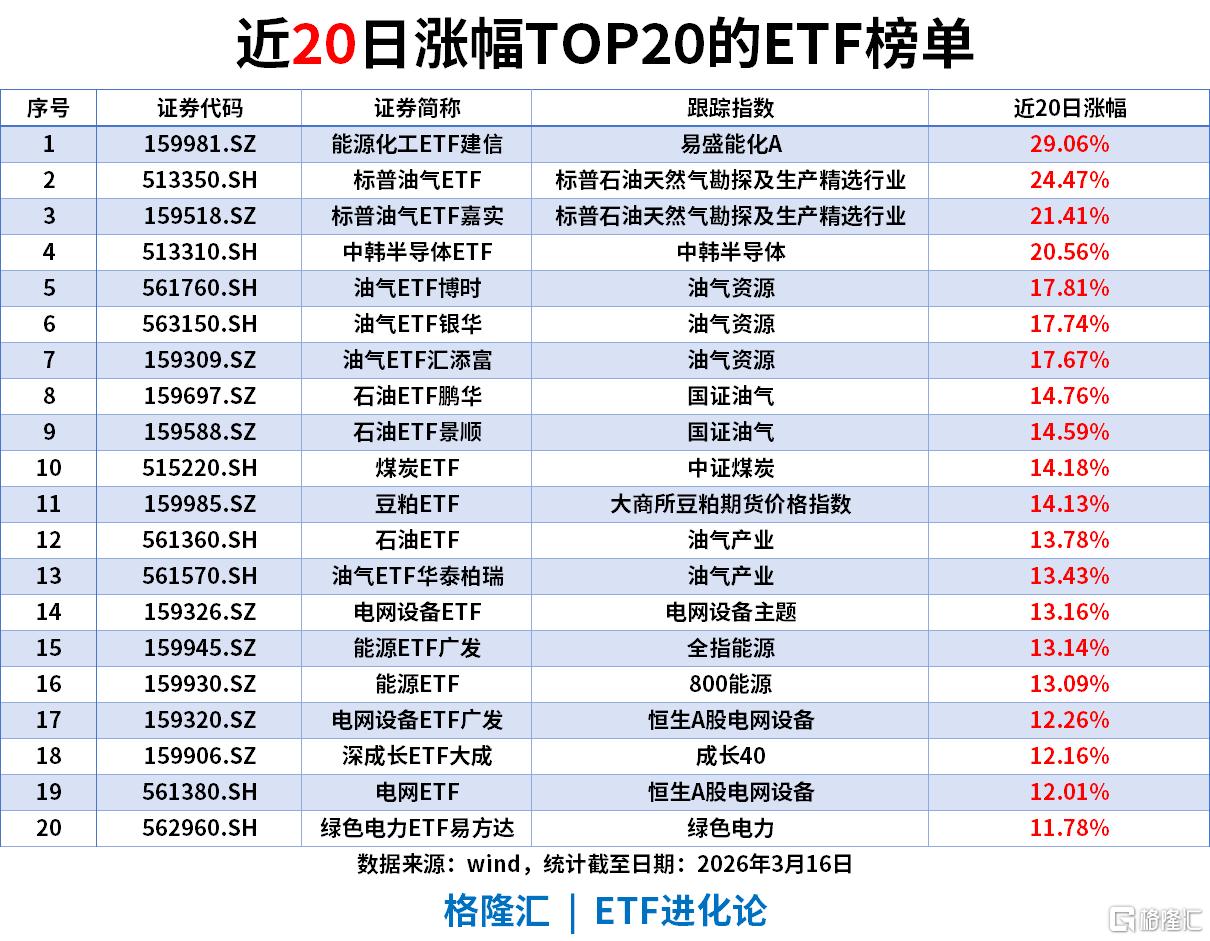 近20日涨幅TOP20ETF(截至2026-03-16)