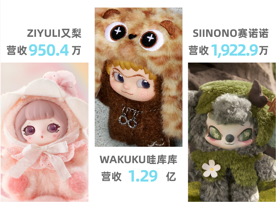 截至2025年12月31日,HERE奇梦岛已拥有11个自有IP和7个授权IP,覆盖萌系、潮流、奇幻、治愈等多种风格,满足不同圈层消费者的需求。围绕WAKUKU、SIINONO、ZIYULI、FILLA、FUNII等核心IP,奇梦岛持续推出系列新品,丰富产品线与消费场景,包括毛绒盲盒、挂件、手办、生活用品等,形成“内容 产品 体验”的完整消费闭环。