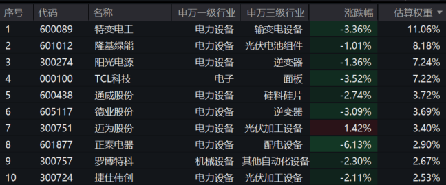 光伏ETF汇添富(516290)标的指数成分股多数回调,正泰电器跌超6%,特变电工、TCL科技、德业股份跌超3%,隆基绿能、阳光电源等回调。