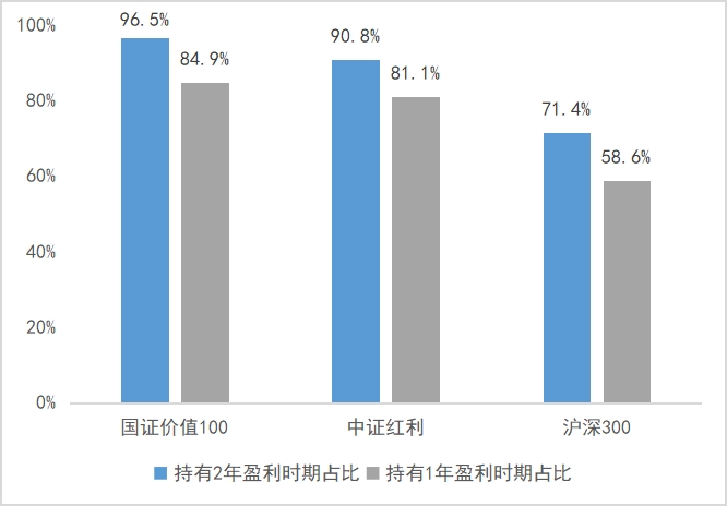 更关键的是国证价值100的持有体验,这也是最戳普通投资者痛点的地方。A股里从来不缺短期暴涨的品种,缺的是能让普通人拿得住、睡得着、长期能赚钱的资产。历史测算数据摆在这里:任意时间买入国证价值100,持有1年盈利的时期占比高达84.9%,持有2年盈利的时期占比直接到96.5%,持有1年的平均收益能达到20.8%。